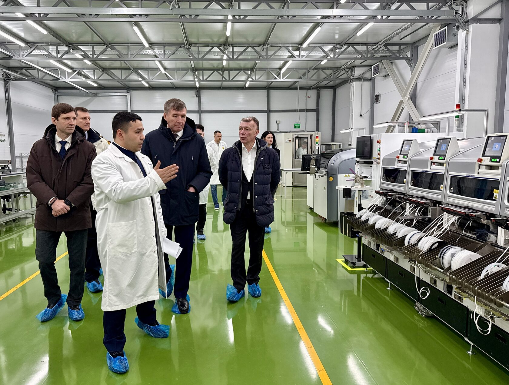 Министр экономики Республики Татарстан Мидхат Шагиахметов и председатель Комитета Государственной Думы по экономической политике Максим Топилин в сопровождении генерального директора ОЭЗ «Иннополис» Рената Халимова посетили производство телекоммуникационного и ИТ-оборудования «ТА-ИТ».